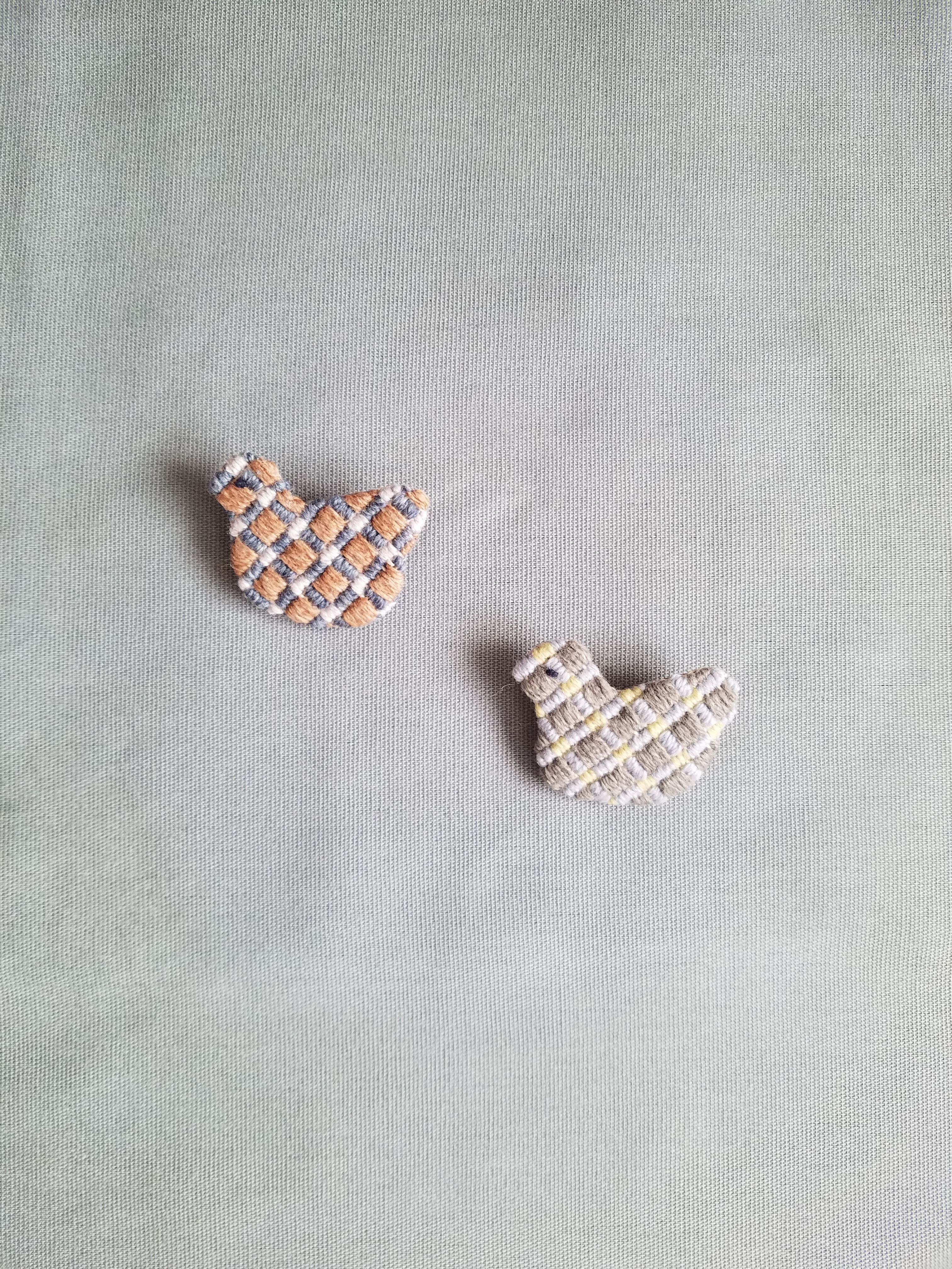 デンマークの編み物用糸(コットン混)で刺繍しています。1色でもセンスが光る素敵な色合いの糸ですが、程よいコントラストで数色組わせた柄にしてみました。シンプルなトップスとのコーディネートがおすすめです。