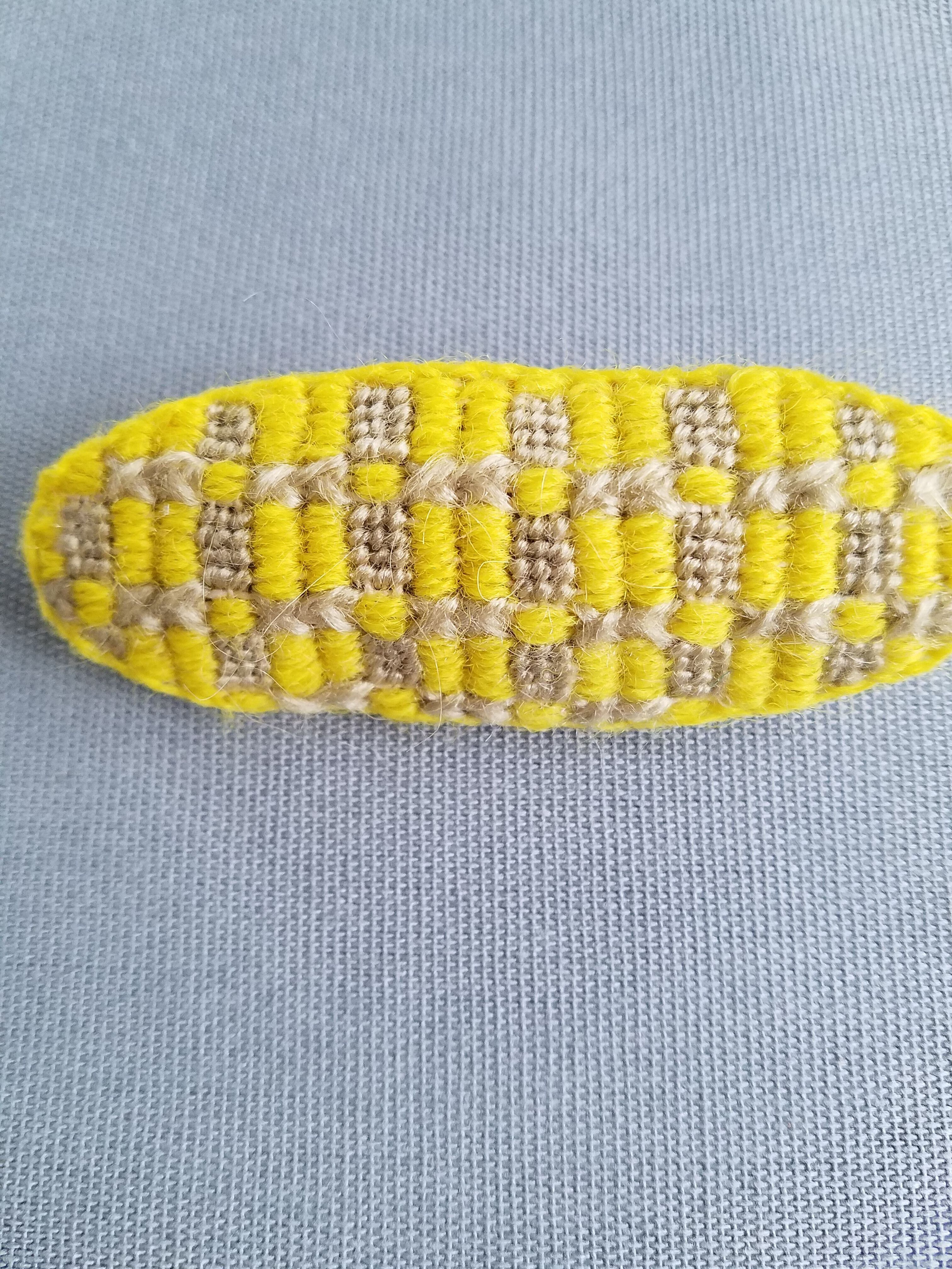 ウール刺繍の楕円形のブローチ。
